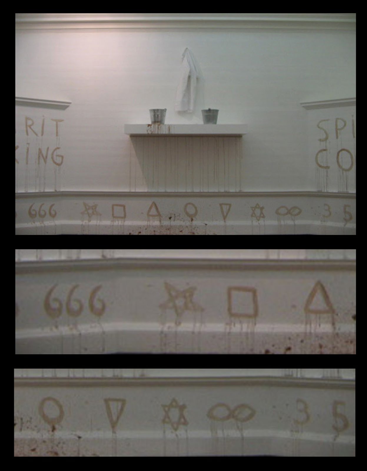 Here are some of the statements written in blood (faux or not?), “Spin around until you lose consciousness, try to eat…,” “Fresh morning urine, sprinkle over nightmare dreams,” “With a sharp knife cut deeply into the middle finger of your left hand, eat the pain,” (left hand path) “Mix fresh breast milk with fresh sperm…”