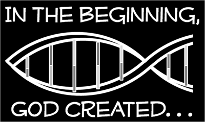 I have placed the following “In the Beginning, God Created…” ichthus (Jesus fish) DNA double helix combo related image into my CafePress site where you can purchase them upon t-shirts, stickers, etc.