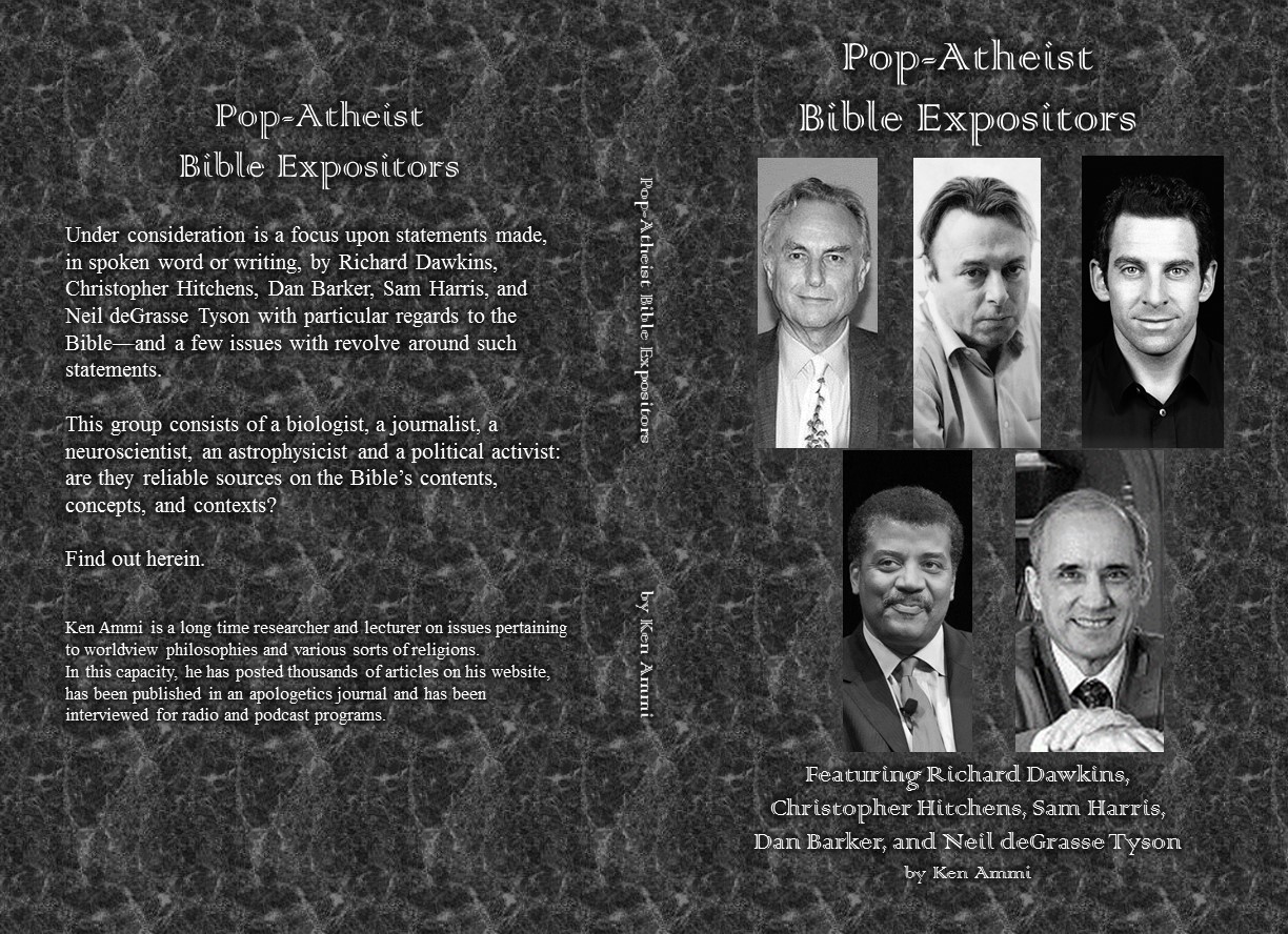 Under consideration is a focus upon statements made, in spoken word or writing, by Richard Dawkins, Christopher Hitchens, Dan Barker, Sam Harris, and Neil deGrasse Tyson with particular regards to the Bible—and a few issues with revolve around such statements. This group consists of a biologist, a journalist, a neuroscientist, an astrophysicist and a political activist: are they reliable sources on the Bible’s contents, concepts, and contexts? Find out herein. Thus, this is not tantamount to your typical Atheism books.