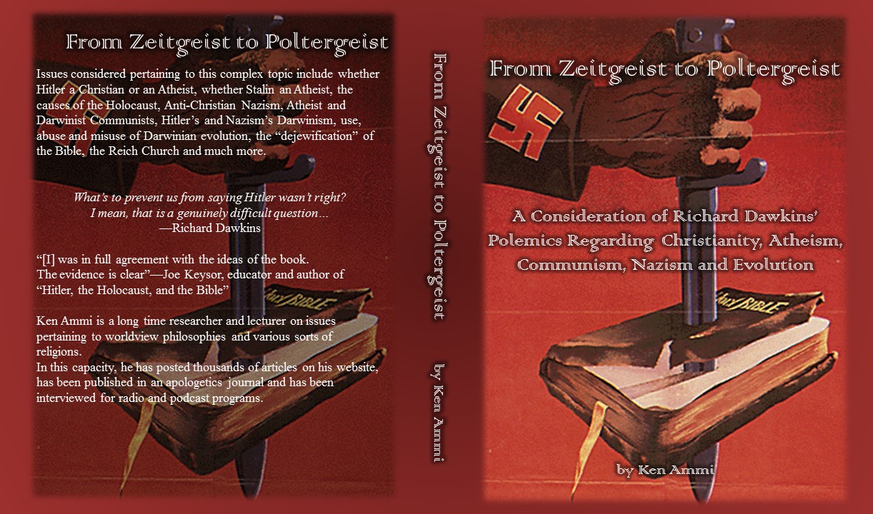 Issues considered pertaining to this complex topic include whether Hitler a Christian or an Atheist, whether Stalin an Atheist, the causes of the Holocaust, Anti-Christian Nazism, Atheist and Darwinist Communists, Hitler’s and Nazism’s Darwinism, use, abuse and misuse of Darwinian evolution, the “dejewification” of the Bible, the Reich Church and much more.