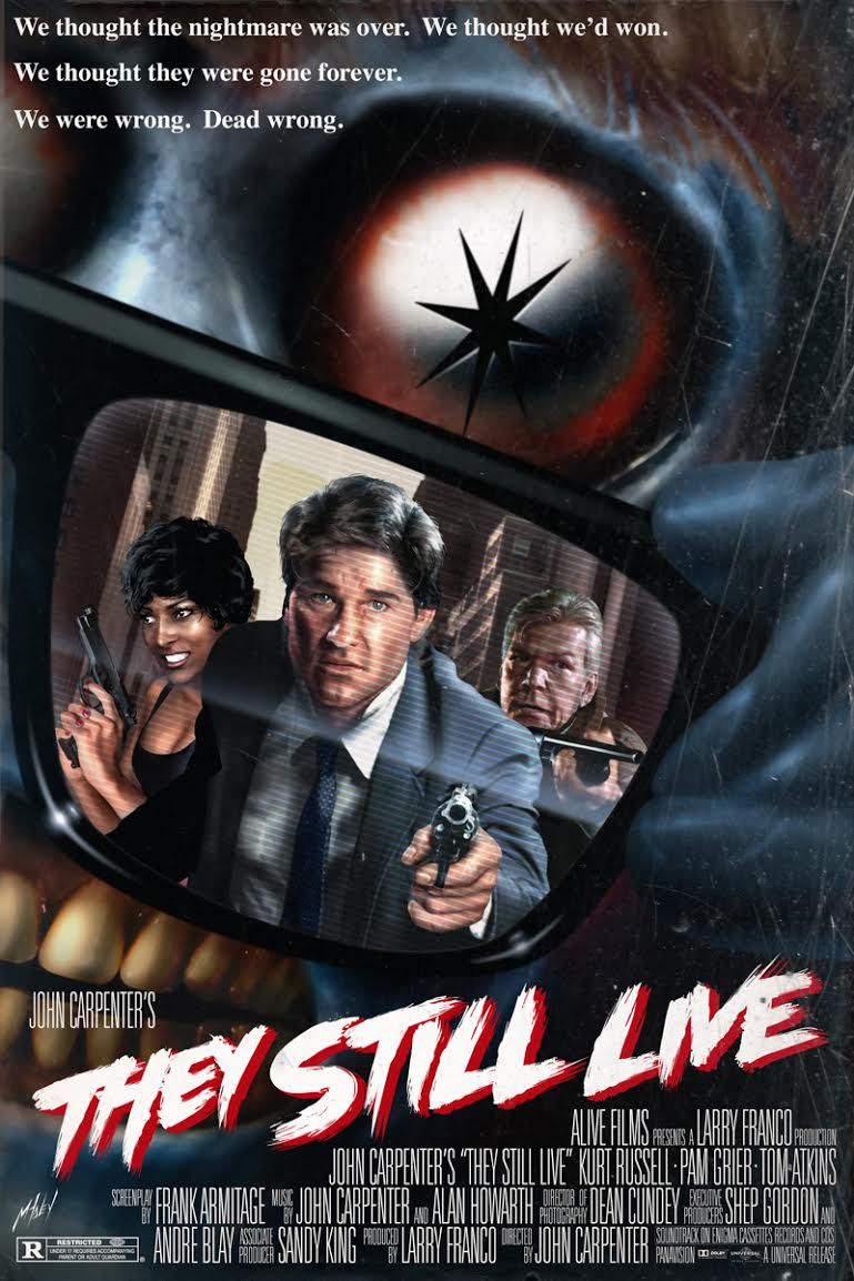 The 1988 AD movie “They Live” was directed by John Carpenter and stars Roddy Piper as Nada, Keith David as Frank, Meg Foster as Holly, Peter Jason as Gilbert, et al.