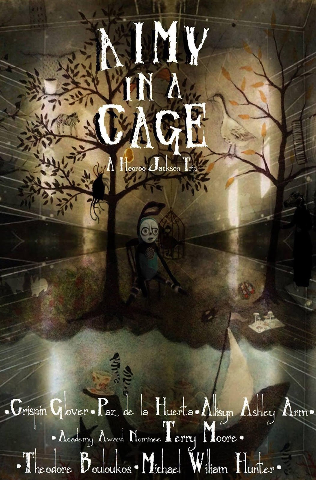 The 2016 AD movie “Aimy in a Cage” is based on the book “Aimy Micry” by Hooroo Jackson who also directed the movie which stars Allisyn Ashley Arm as Aimy Micry, Crispin Glover as Claude Bohringer, Terry Moore as Grandma Micry, Paz de la Huerta as Caroline, Michael William Hunter as Steve, et al.