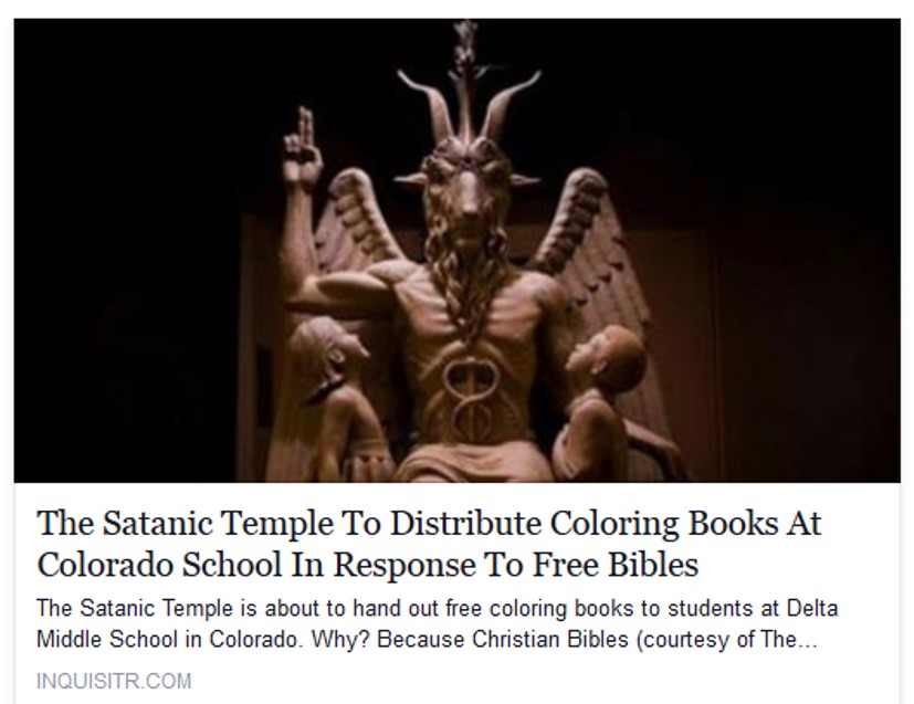 Makenzie O’Keefe, “Atheist and satanic literature to be distributed in Delta County schools,” March 23, 2016 AD.